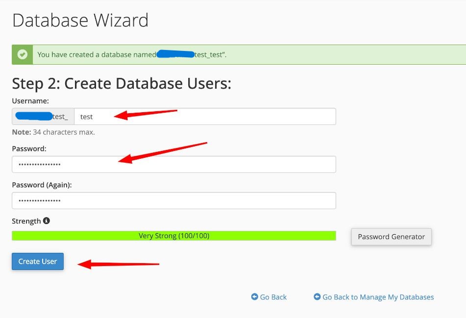 As you probably noticed, your cpanel username will be prepended to any database name or username. For this example the db username is: alttrixcloudtest_test and the username is alttrixcloudtest_test. Once you have your database created you can now connect it to your scripts that will need to access it.